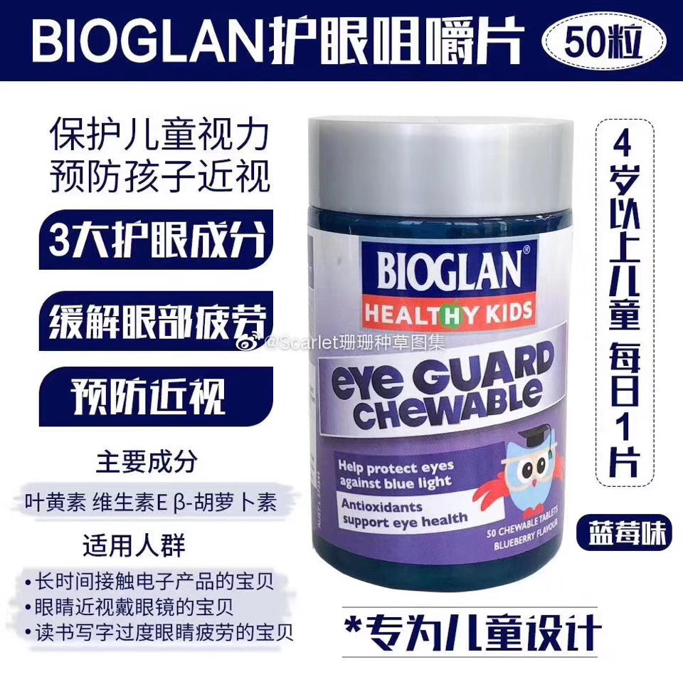 Bioglan宝兰儿童护眼咀嚼片是澳洲本土🇦🇺针对蓝光伤害的儿童护眼产品☝️防止屏幕蓝光伤害眼睛👀富含叶黄素及β胡萝卜素的专业配方